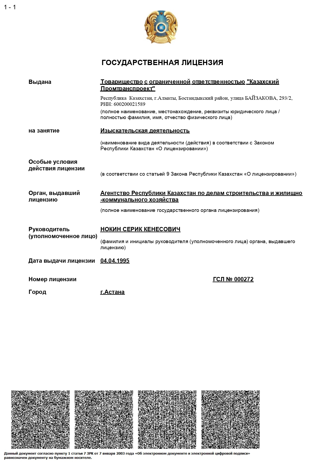 Проектно-изыскательский институт «Казахский Промтранспроект» и является одной из старейших и крупнейших проектно-изыскательских организаций в области транспортного строительства. По проектам института построено множество объектов в Казахстане, во всех республиках Центральной Азии, а также в России и Литве.